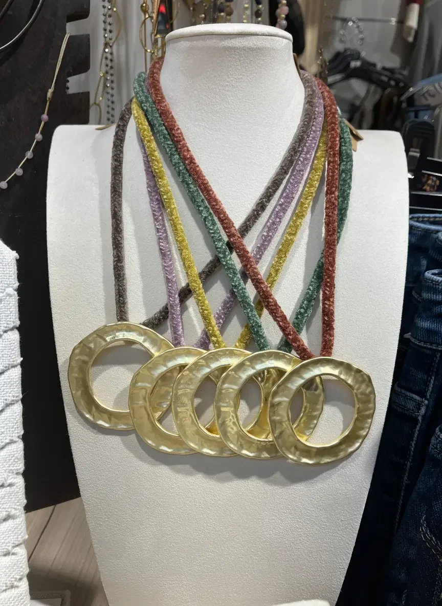 Cada collar está elaborado con atención al detalle, lo que lo convierte en una opción perfecta para quienes valoran la moda artesanal y los accesorios con personalidad. Su diseño es ideal para boutiques, colecciones de temporada o escaparates que buscan destacar con propuestas únicas y con alma.